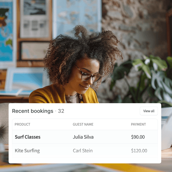 View, update, cancel and refund bookings with one click. Track payments and your balance in your dashboard.