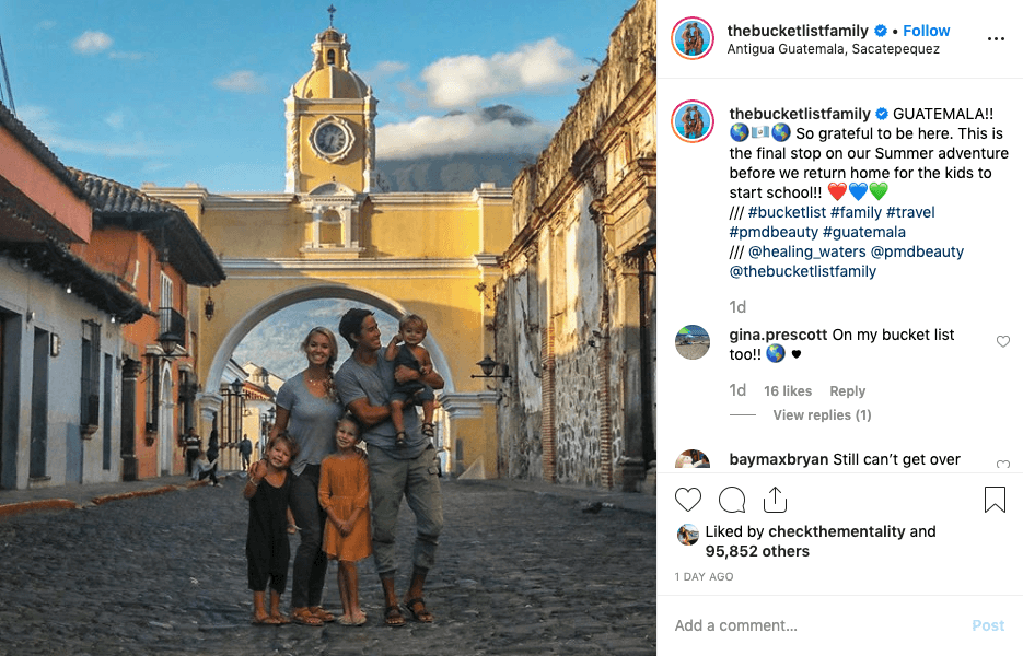 Pour notre dernier choix, nous devions inclure la famille Bucket List, dont l'histoire est vraiment inspirante! Cette famille a tout vendu pour pouvoir emmener leurs enfants dans un voyage autour du monde. Du Guatemala à l'Argentine, cette famille a certainement fait le voyage de leur vie!