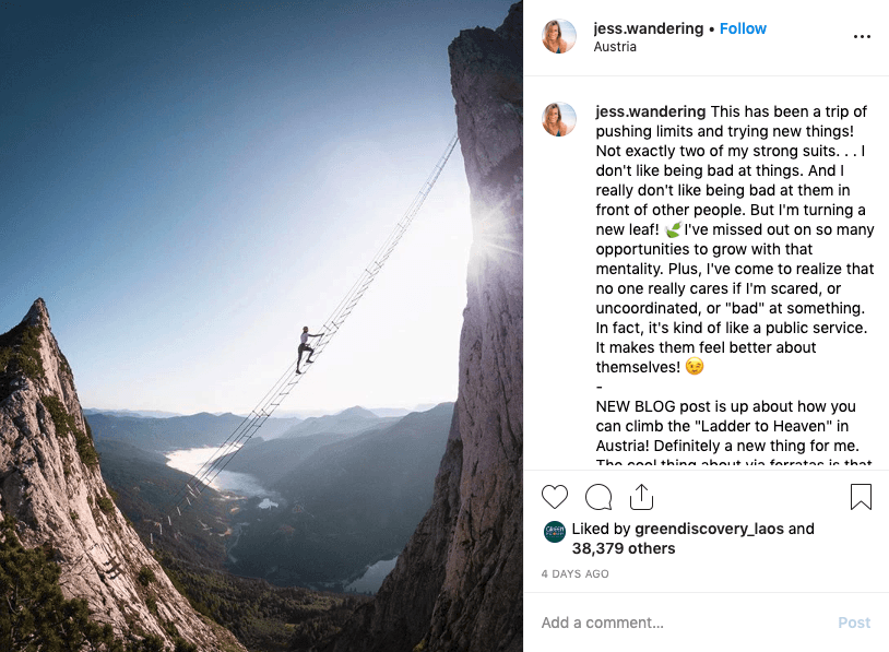 Jess est clairement une aventurière dans l'âme, et nous adorons ses clichés qui la montrent se perdre dans la nature, que ce soit en escaladant des montagnes ou en nageant dans l'océan. Ses photos de nature sont absolument magnifiques et montrent la nature dans toute sa splendeur!